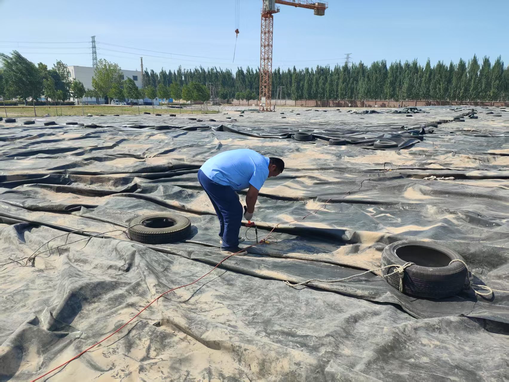 双电极法(水枪法):这是目前最常用、最高效的“找漏神器”。在膜上通电,膜本身是绝缘的,电流过不去。但哪里有破洞,电流就会从那里漏下去,设备立马就能报警并精确定位,连针眼大的洞都能找出来。这是验收环节的硬菜,必须做扎实。
