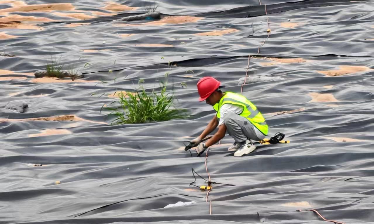 规范在“覆盖工程”章节中明确,封场覆盖系统的主防渗层采用土工膜时,渗透系数应小于1×10?12 cm/s,设计使用寿命大于30年,厚度宜为1mm~1.5mm。土工膜在施工及运行过程中可能出现开口、撕裂、穿刺等破损,一旦发生渗漏,渗沥液下渗将直接污染地下水。