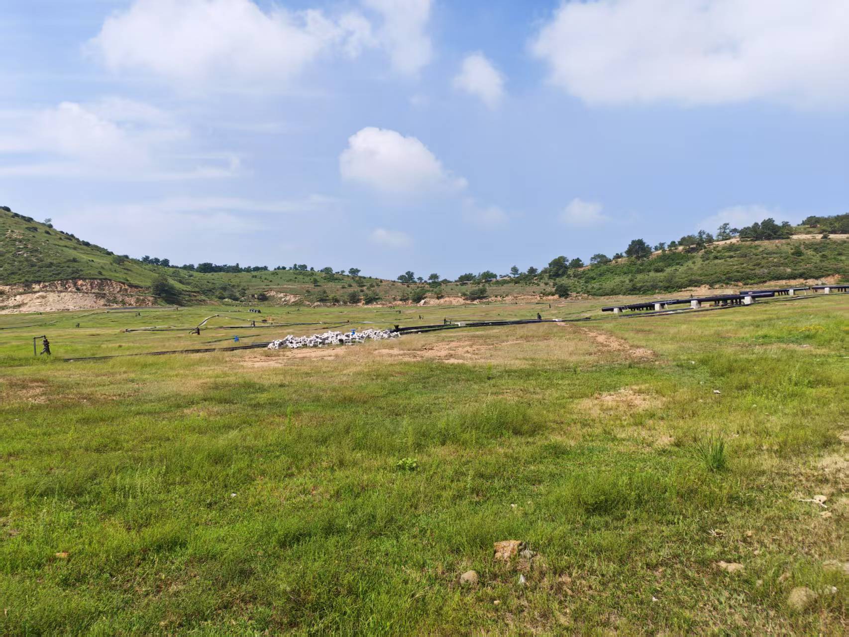 施工过程中必须按铺膜图进行裁剪与铺设,并同步完成各项质量记录,包括铺设施工记录、试样焊接记录及实际焊接过程记录。所有焊缝应外观整齐、无裂纹、气孔、漏焊或虚焊现象,铺设后膜材应平整无褶皱、无隆起悬空,横向接缝需距坡脚1.5米以上,边坡接缝须平行于坡向。焊接质量检测需实时进行,每道工序须经自检与监理验收合格后方可继续。